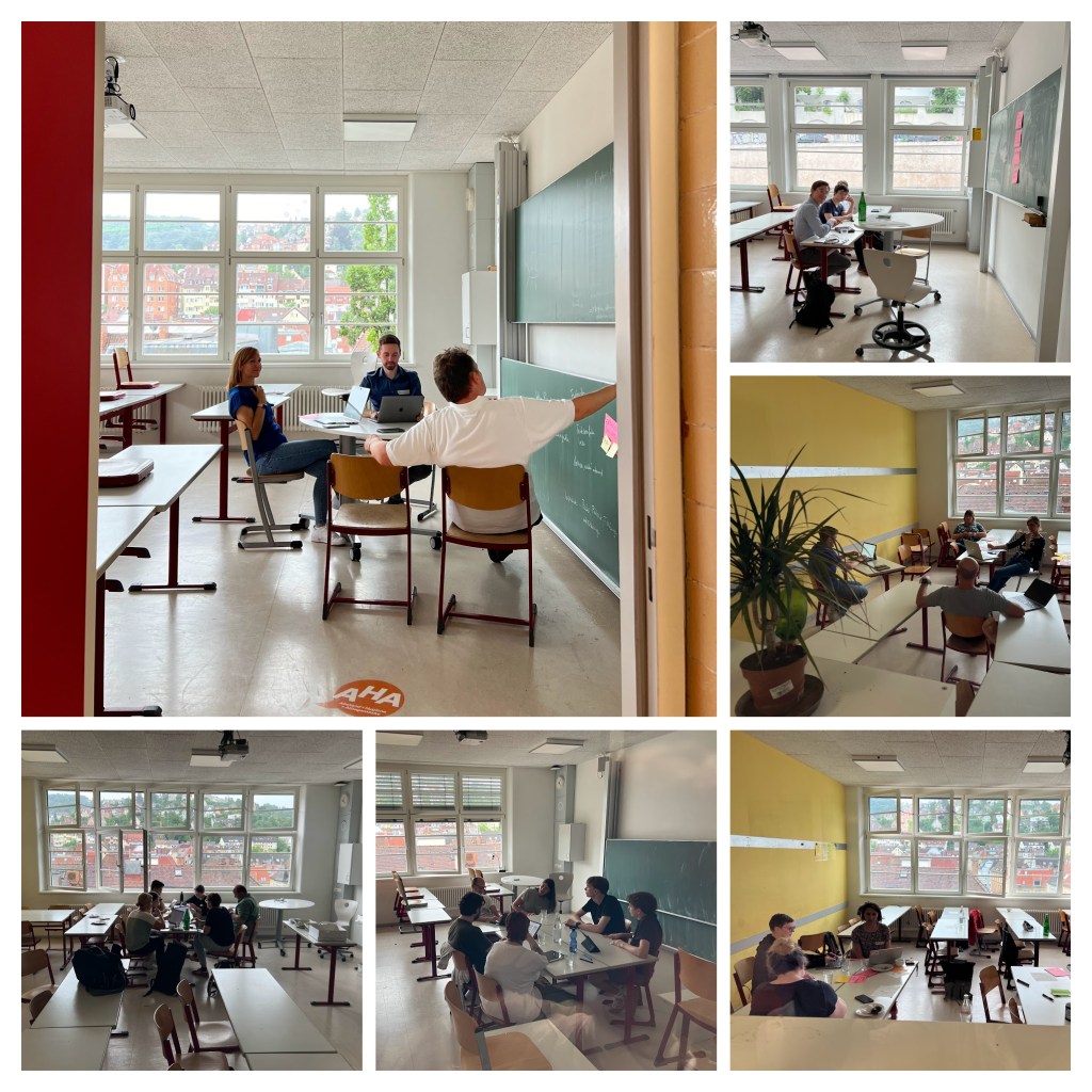 Buchstäblich und sprichwörtlich im Schweiße unseres Angesichts haben wir sechs Stunden lang fast nonstop im Stuttgarter Sommerwetter geschuftet. Wir – diesmal ein erweiterter Kreis von 25 Personen: Thinktank-Kernteam, dazu einige Lehrkräfte und Schüler:innen als Gäste, nochmals verstärkt durch Dr. Patrick Albus, Psychologe und wissenschaftlicher Mitarbeiter der Abteilung Lehr-Lernforschung der Uni Ulm. Thema unseres KI-Thinktanks war diesmal der KI-Einsatz in der Oberstufe, der gerade im Kontext von Facharbeiten oder anderen schriftlichen Aufgaben fast durchgängig große Aufmerksamkeit erfährt – wenn auch etwas einseitig im Schlaglicht der Fragen des Schummelns, Plagiierens, Zitierens (und evtl. Verbietens).