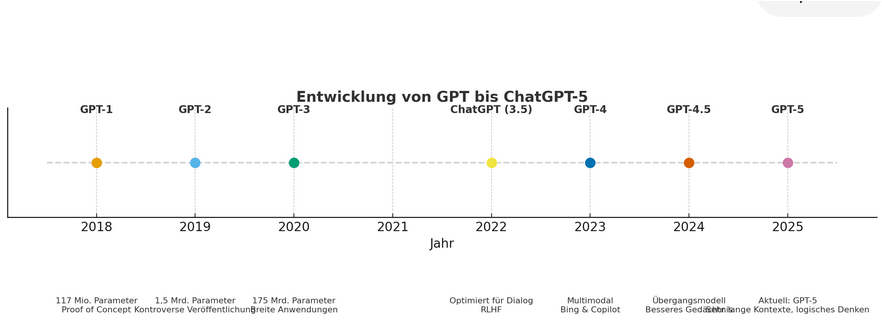 ChatGPT) und zeigt, wie rasant sich Sprachmodelle weiterentwickeln können. Den Anfang machte 2018